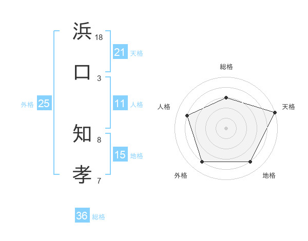 浜口 知孝さんの天格は21画の5点!