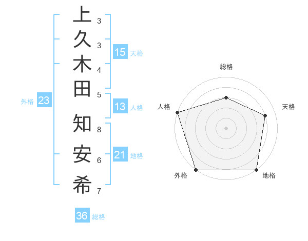 上久木田 知安希さんの外格は23画の5点!