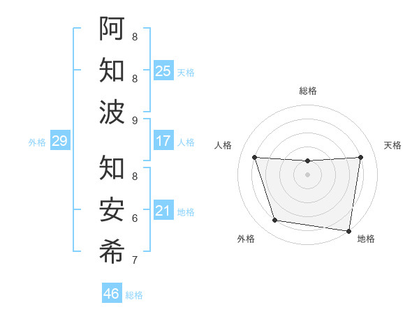 阿知波 知安希さんを姓名の画数から五運を鑑定