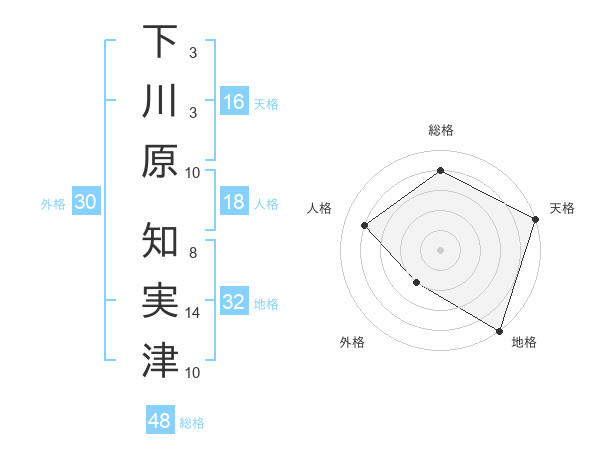 下川原 知実津さんの総格は48画の4点!