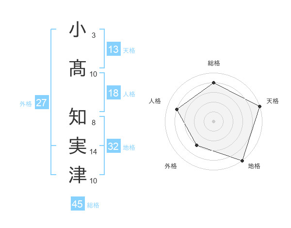 小髙 知実津さんの天格は13画の5点!
