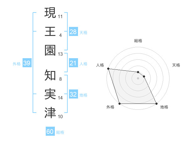 現王園 知実津さんを姓名の画数から五運を鑑定