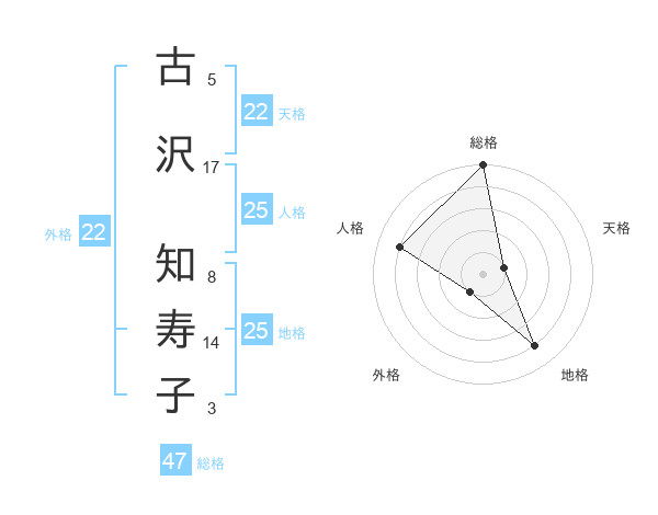 古沢 知寿子さんを姓名の画数から五運を鑑定
