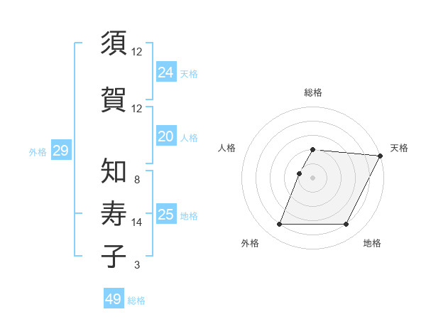 須賀 知寿子さんを姓名の画数から五運を鑑定