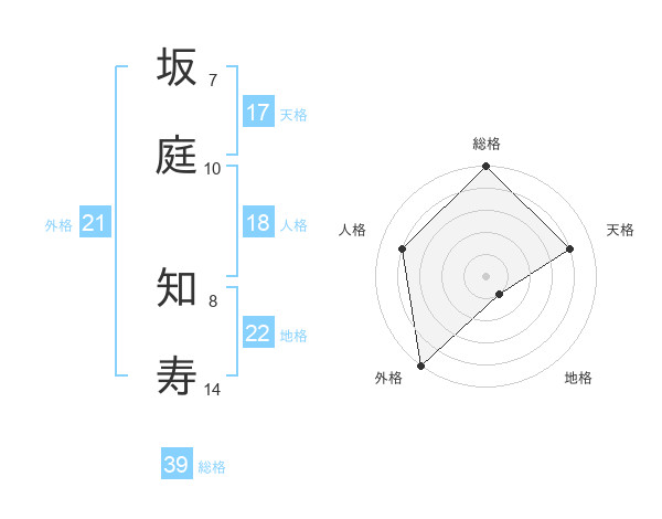 坂庭 知寿さんの外格は21画の5点!