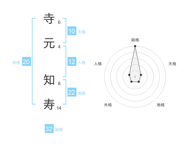 寺元 知寿さんを姓名の画数から五運を鑑定
