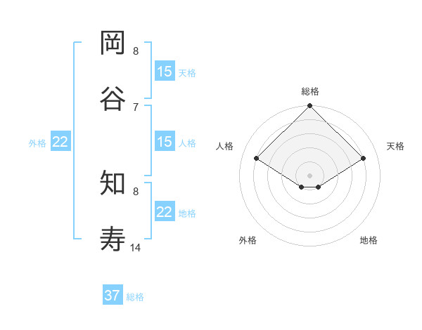 岡谷 知寿さんの総格は37画の5点!