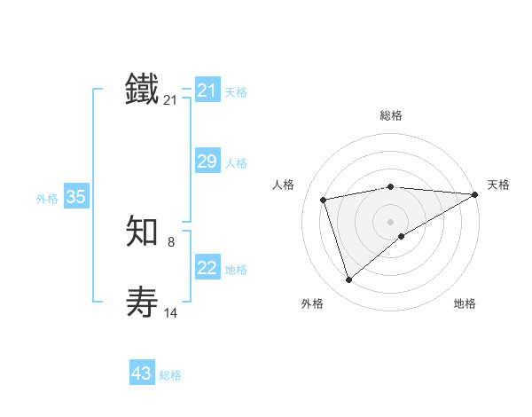 鐵 知寿さんの天格は21画の5点!