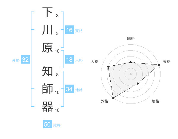 下川原 知師器さんの総格は50画の2点!
