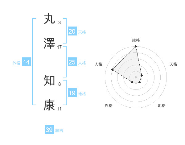 丸澤 知康さんの天格は20画の1点!