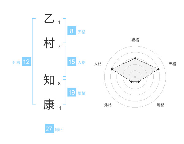 乙村 知康さんの天格は8画の4点!