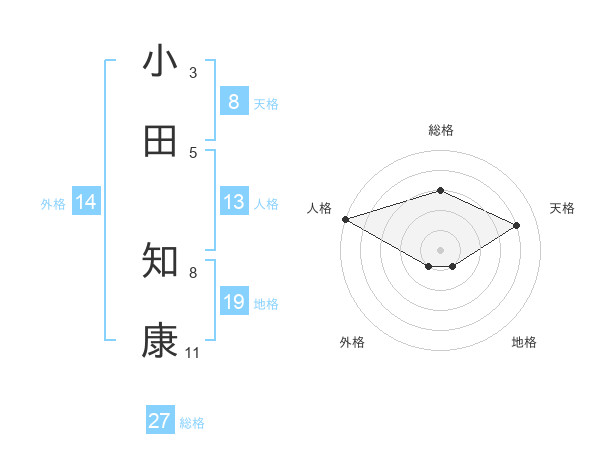 小田 知康さんの総格は27画の3点!