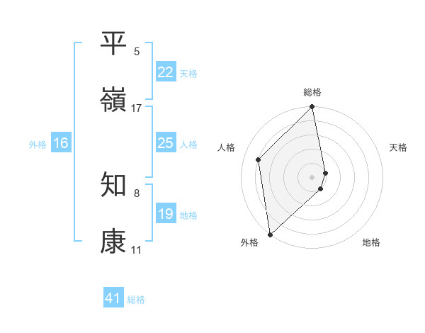 平嶺 知康さんを姓名の画数から五運を鑑定