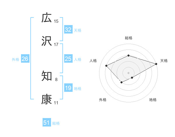 広沢 知康さんの天格は32画の5点!