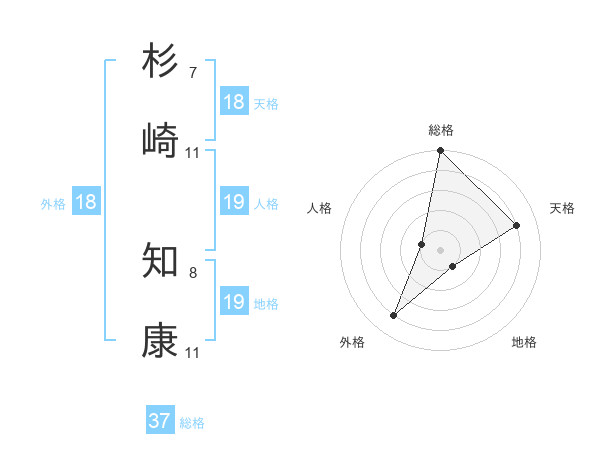 杉崎 知康さんの天格は18画の4点!