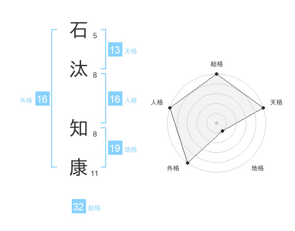 石汰 知康さんの総格は32画の5点!