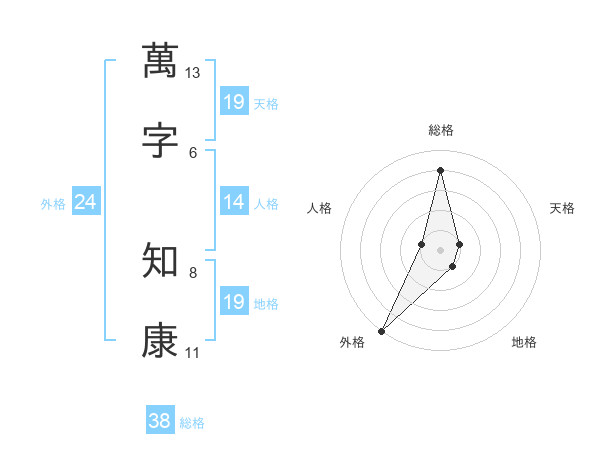 萬字 知康さんの天格は19画の1点!