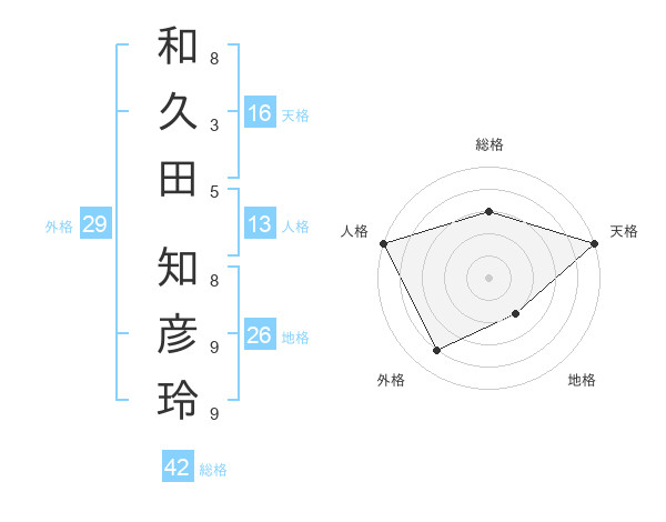 和久田 知彦玲さんの総格は42画の3点!