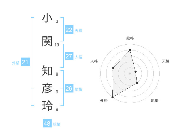 小関 知彦玲さんの外格は21画の5点!
