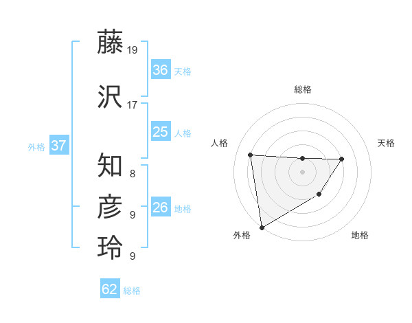 藤沢 知彦玲さんを姓名の画数から五運を鑑定