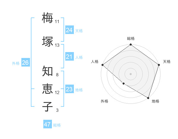 梅塚 知恵子さんの総格は47画の5点!