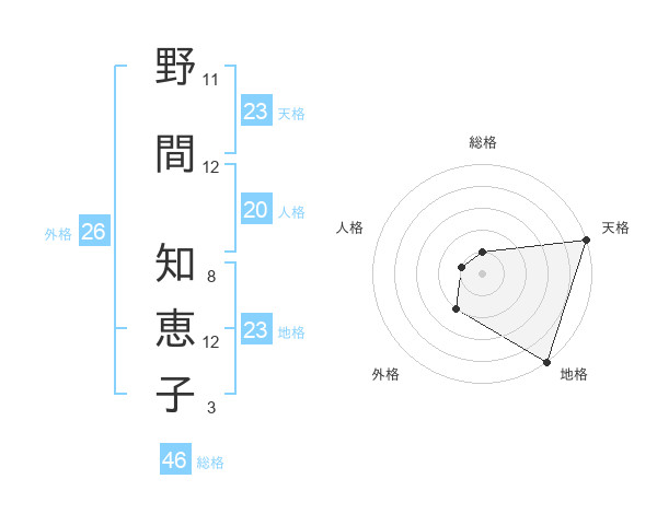 野間 知恵子さんを姓名の画数から五運を鑑定
