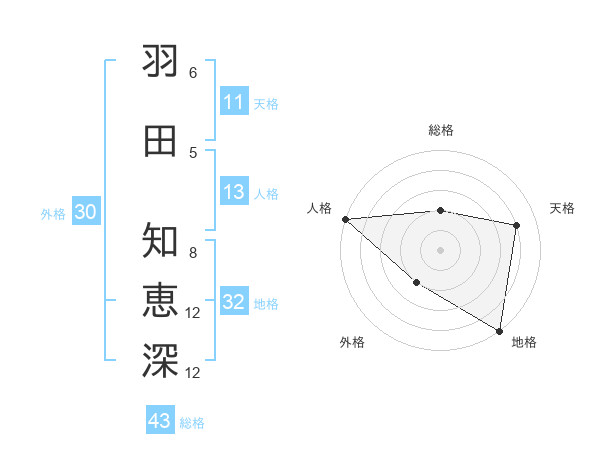 羽田 知恵深さんの総格は43画の2点!
