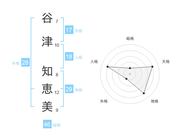 谷津 知恵美さんを姓名の画数から五運を鑑定