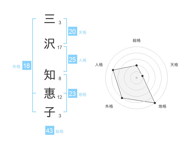 三沢 知惠子さんの天格は20画の1点!