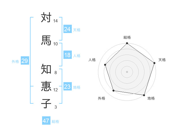 対馬 知惠子さんの総格は47画の5点!