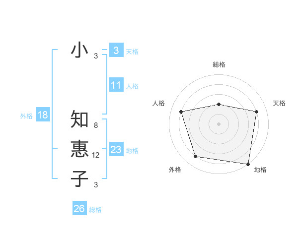小 知惠子さんの地格は23画の5点!