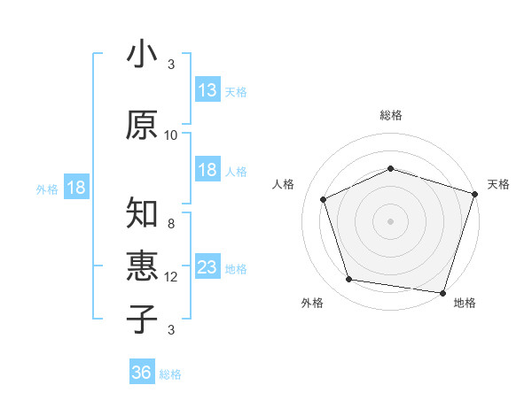 小原 知惠子さんの天格は13画の5点!