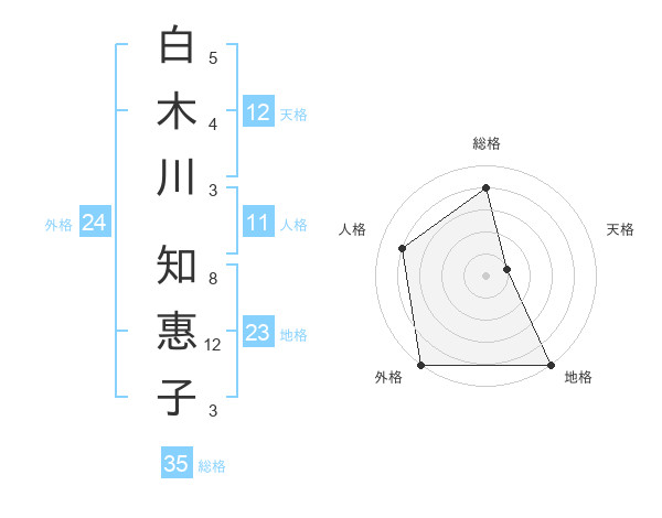白木川 知惠子さんの総格は35画の4点!