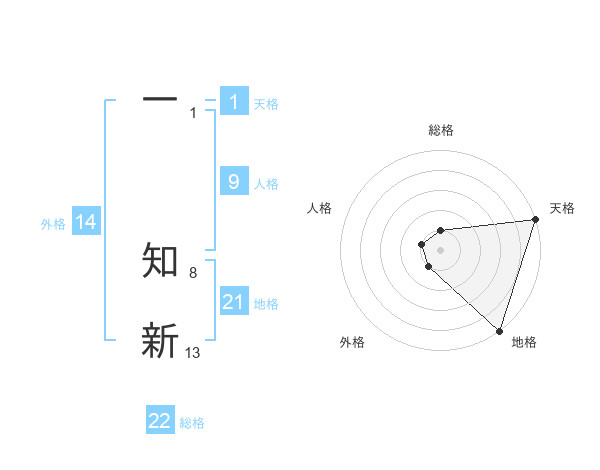一 知新さんの総格は22画の1点!