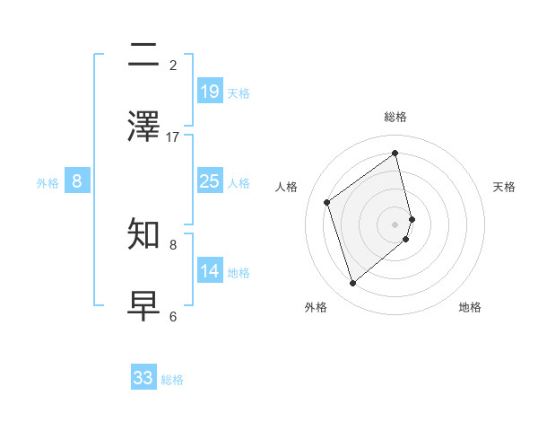 二澤 知早さんの天格は19画の1点!