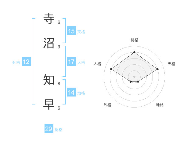 寺沼 知早さんの総格は29画の4点!