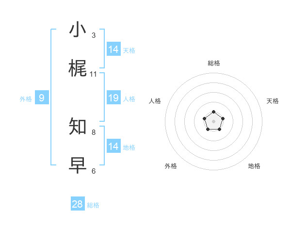 小梶 知早さんの天格は14画の1点!