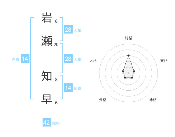 岩瀬 知早さんを姓名の画数から五運を鑑定