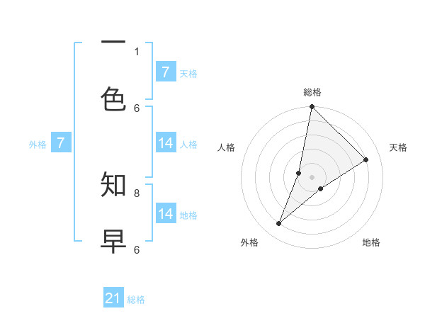 一色 知早さんの総格は21画の5点!