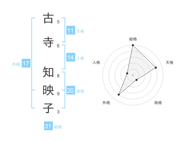 古寺 知映子さんを姓名の画数から五運を鑑定