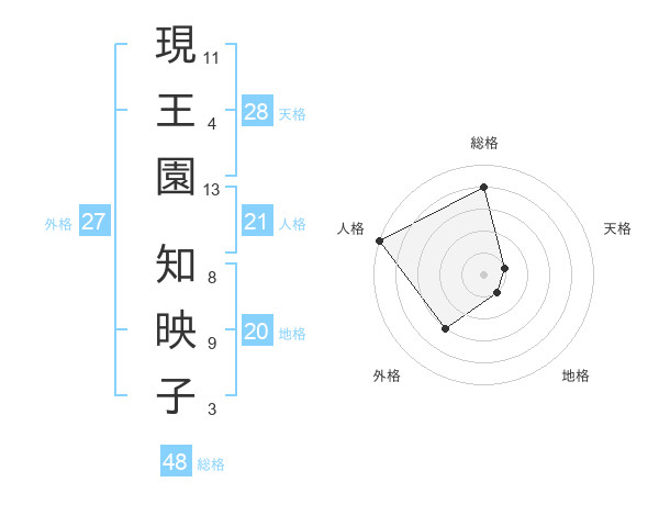 現王園 知映子さんを姓名の画数から五運を鑑定