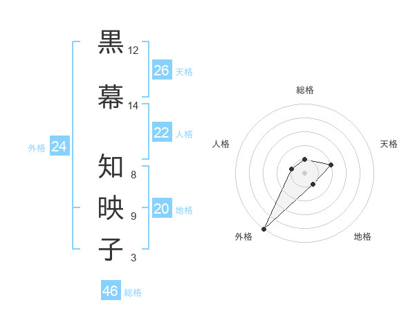 黒幕 知映子さんを姓名の画数から五運を鑑定