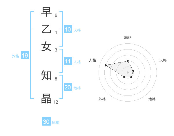 早乙女 知晶さんの総格は30画の2点!