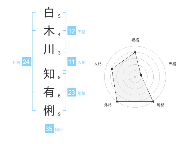 白木川 知有俐さんを姓名の画数から五運を鑑定