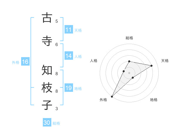 古寺 知枝子さんを姓名の画数から五運を鑑定