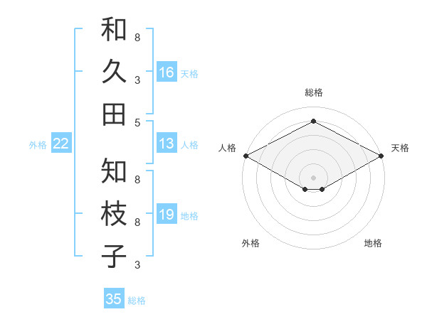 和久田 知枝子さんを姓名の画数から五運を鑑定