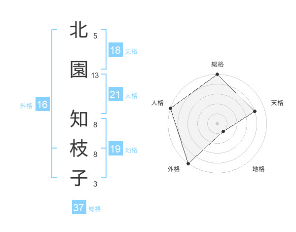 北園 知枝子さんの総格は37画の5点!