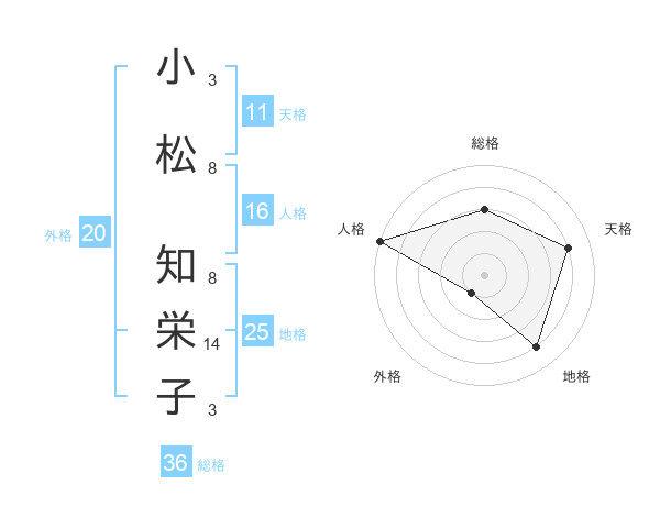 小松 知栄子さんを姓名の画数から五運を鑑定