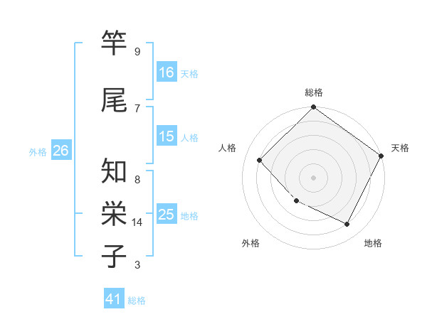 竿尾 知栄子さんの外格は26画の2点!