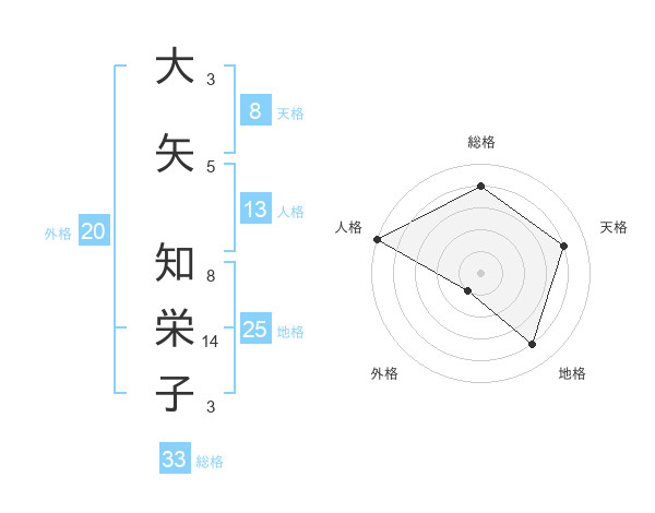 大矢 知栄子さんを姓名の画数から五運を鑑定